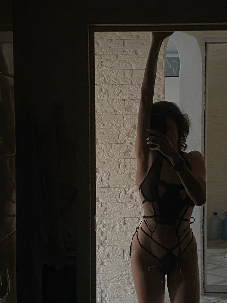 Des détails qui ne passent pas inaperçus L'un des éléments marquants de cette guepière est son jeu de lanières innovant. Ces dernières ajoutent une touche unique et sexy à la pièce, se prolongeant jusqu'au cou pour un effet encore plus captivant.